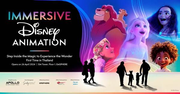 (กรุงเทพฯ, 8 เมษายน 2567) เตรียมพร้อมสำหรับการเดินทางเพื่อออกไปผจญภัยครั้งสำคัญของชีวิตผ่านโลกที่น่าทึ่งของการ์ตูนดิสนีย์กับนิทรรศการที่น่าตื่นเต้นมากที่สุด Immersive Disney Animation โดยจะเปิดแสดงครั้งแรกในกรุงเทพมหานคร ประเทศไทย ตั้งแต่วันที่ 26 เมษายน – 20 มิถุนายน 2567 ที่ EM Tower ชั้น 1 ศูนย์การค้า เอ็มสเฟียร์