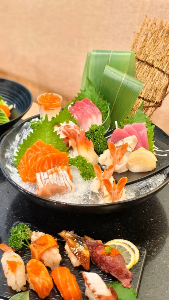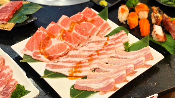 ในไลน์บุฟเฟต์มีรายการอาหารให้เลือกมากกว่า 100 รายการ ที่คัดสรรมาแล้วว่าเป็นญี่ปุ่นแบบแท้ ๆ รสชาติถูกปากคนไทย อาทิ เนื้อวัวนำเข้าจากต่างประเทศ JP, AUS, US มีเอกสารรับรองชัดเจนตรวจสอบที่มาได้จริง อาหารทะเลสด ๆ กุ้งแม่น้ำ หอยนางรม หอยแมลงภู่ หอยเซลล์ หรือจะเป็น ซูชิ ซาชิมิ ก็ยกขบวนมาเต็มแม็ก ทั้ง Salmon, Oyster, Ikura, Hamaji, Tuna, Unagi, Hokkigai และอีกเพียบ กินได้แบบเต็มอิ่ม 2 ชั่วโมงเต็ม โดยบุฟเฟต์มี 4 แบบ ให้เลือกอร่อย Supreme Buffet ราคา 1,499 net, Platinum Buffet ราคา 999 net, Gold Buffet ราคา 799 net และ Silver Buffet ราคา 499 net