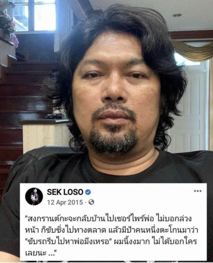 เรียกได้ว่าเป็นโพสต์ไวรัลของ ร็อคเกอร์ชื่อดัง อย่าง พี่เสกโลโซ เมื่อผ่านสงกรานต์เมื่อไหร่ โพสต์นี้ก็มักจะถูกนำกลับมาแชร์อีกครั้ง ซึ่งโพสต์นี้โพสต์มาตั้งแต่ปี 2015 โดยมีข้อความระบุไว้ว่า “สงกรานต์กะจะกลับบ้านไปเซอร์ไพร์พ่อ ไม่บอกล่วงหน้า ก็ขับซิ่งไปทางตลาด แล้วมีป้าคนหนึ่งตะโกนมาว่า ‘ขับรถรีบไปหาพ่อมึงเหรอ’ผมนี้งงมาก ไม่ได้บอกใครเลยนะ…” ขอบอกเลยว่างานนี้เรียกเสียงฮือฮาและการกดไลค์รัว ๆ เลยล่ะค่าาา
