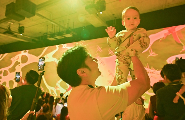 นิทรรศการนี้แจกสายรัดข้อมือแบบพิเศษ ที่จะส่องสว่างไปตามการเดินชมนิทรรศการของผู้เข้าชม