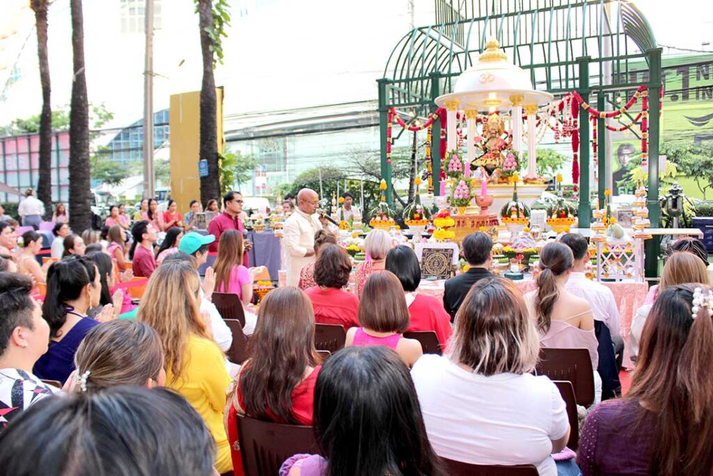 ซึ่งปีนี้ถือว่าเป็นปีมูเก็ตติ้ง ก็คือ Marketing กับมูเตลูมาร่วมกัน ดังนั้นการที่เราเป็นศูนย์การค้าเราก็คาดหวังว่าประชาชนทั้งคนไทยและต่างชาติที่มีความศรัทธาในองค์พระพิฆเนศวรและองค์พระแม่ลักษมี ที่จะมาร่วมขอพรซึ่งไม่ต้องไปไหนไกลครับ ขึ้นรถรถไฟฟ้าใต้ดินมาก็เจอสะดวกในการเดินทาง ซึ่งเราก็มองว่าเป็นนิมิตหมายที่ดี การที่เราเป็นศูนย์การค้าพอประชาชนได้เข้ามาสักการะองค์เทพก็อาจจะได้มีโอกาสเข้าไปช้อปปิ้งหรือทานอาหารด้านในศูนย์การค้าของเราด้วย