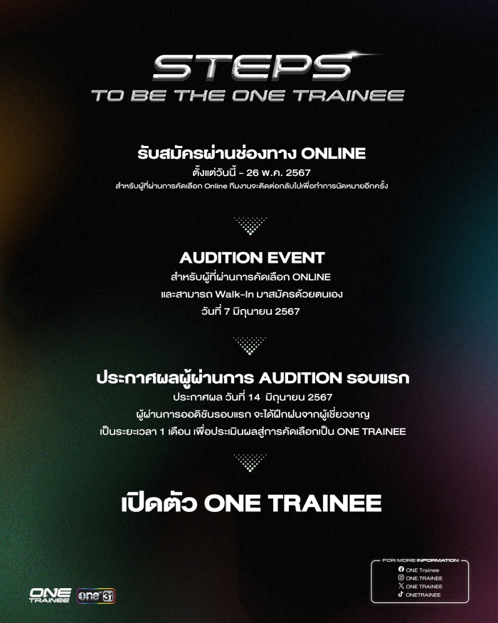 “ช่อง one31” ผุดโปรเจกต์ “ONE TRAINEE” เฟ้นหาคนมีฝัน ปั้นคนรุ่นใหม่เข้าสู่วงการบันเทิง