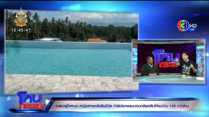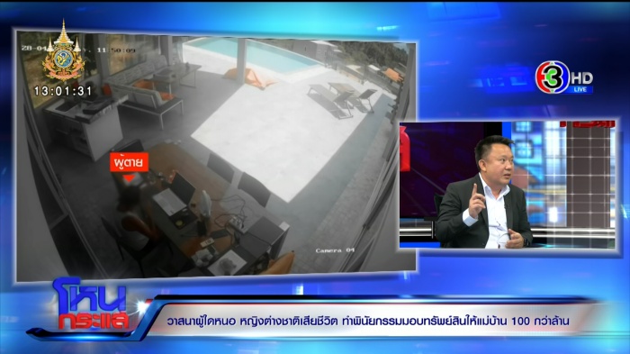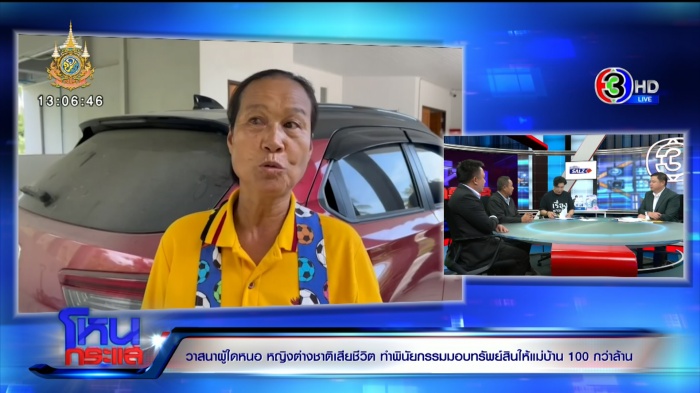 รายการโหนกระแส ออกอากาศวันที่ 3 พ.ค. 67 ดำเนินรายการโดย “หนุ่ม กรรชัย กำเนิดพลอย” ผลิตในนามบริษัท ดีคืนดีวัน จำกัด ออกอากาศทุกวันจันทร์-ศุกร์ เวลา 12.35 น. ทางช่อง 3 กดหมายเลข 33 สัมภาษณ์ “เชิดชาย” นักข่าวสุราษฎร์ธานี คนเปิดประเด็นนี้ ,หมอหมู รศ.นพ.วีระศักดิ์ จรัสชัยศรี แพทย์ผู้เชี่ยวชาญด้านนิติเวช มศว., ทนายแก้ว ดร.มนต์ชัย จงไกรรัตนกุล พูดเรื่องความเป็นไปได้กับพินัยกรรมฉบับนี้