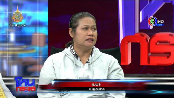 แม่พร : อย่างที่บอก การสูญเสียไม่สามารถกลับคืนมาได้แล้ว แต่การแสดงออกของพวกเขาไม่มี ยอมรับว่างานศพเขามาช่วยจริง แต่หลังงานศพไปจนถึงวันนี้ เขาเพิ่งโทรมาหาหนูวันที่ออกข่าว เมียคู่กรณีเพิ่งโทรมา ตั้งแต่นั้นหายเงียบ โทรมาต่อว่าเราด้วยว่าให้ข้อมูลผิด อย่างที่ออกรายการไปมันคืออะไรคะ (ร้องไห้) หนูอยากเรียกร้องความยุติธรรมให้ลูกหนู หนูเรียกร้องแค่ว่าทำไมถึงเอาให้ถึงตาย