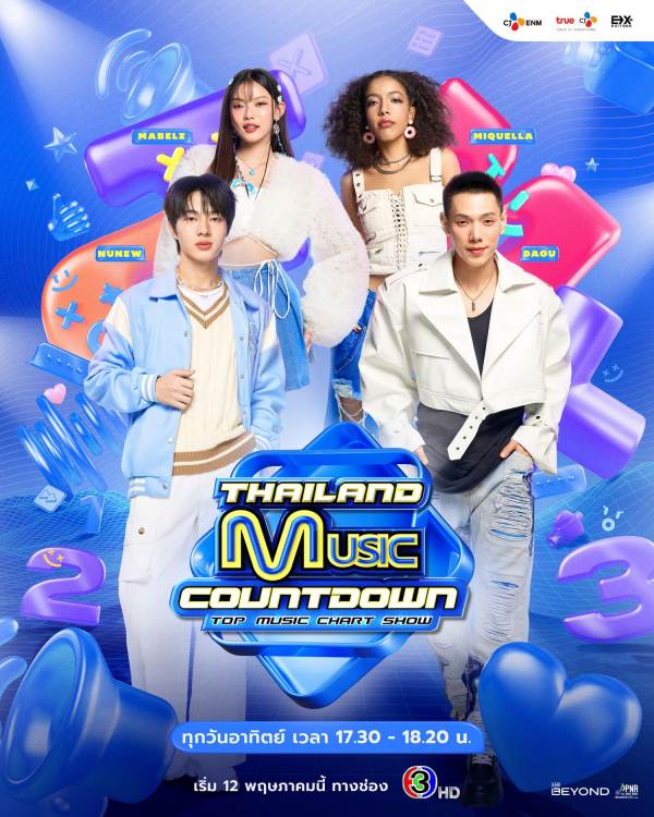 เขย่าบัลลังก์ต่อเนื่องด้วยรายการเพลงน้องใหม่ที่จะมาปลุกกระแส T-Pop อย่าง “Thailand Music Countdown” ที่แค่เปิดตัวเหล่า MC อย่าง “มาเบล PiXXiE”, “ต้าห์อู๋ พิทยา”, “มิเคลล่า MXFRUIT” และ “นุนิว ชวรินทร์” ก็สร้างความฮือฮาทั้งโซเชียล พร้อมออกอากาศแล้วทุกวันอาทิตย์ เวลา 17.30 น. เริ่มตอนแรกวันที่ 12 พฤษภาคม 2567