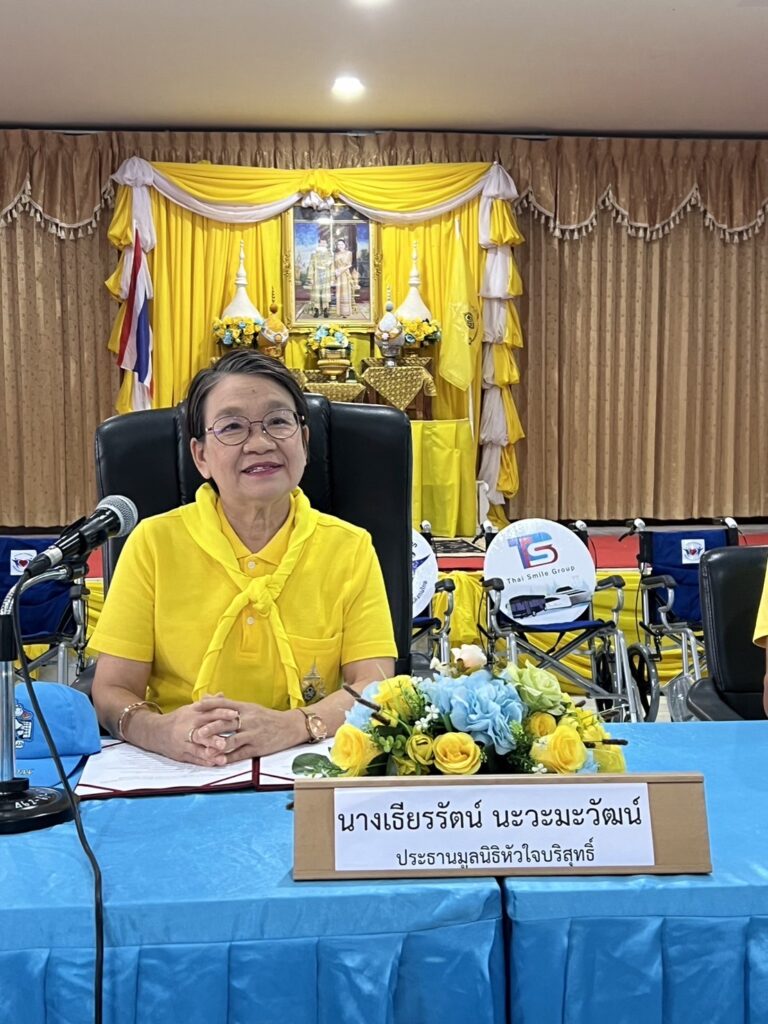 นางเธียรรัตน์ กล่าวว่า ในวันนี้ดิฉันในนามมูลนิธิหัวใจบริสุทธิ์ นำอุปกรณ์เพื่อช่วยเหลือผู้สูงอายุ ผู้พิการ