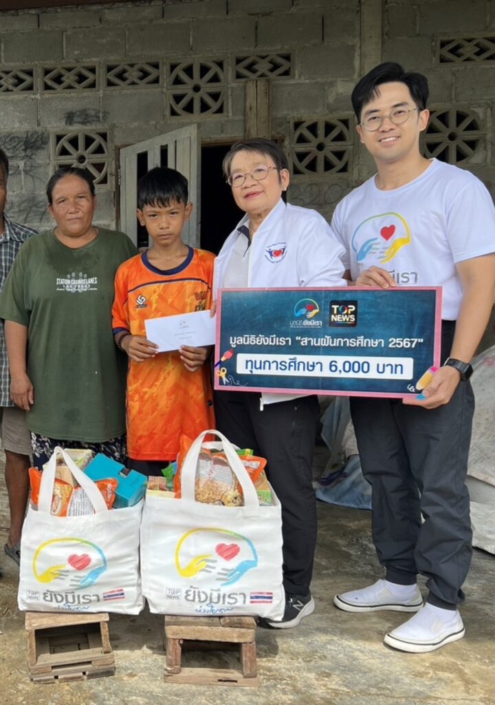 ของมูลนิธิยังมีเรา สถานีข่าวท็อปนิวส์ สำหรับวันนี้ ได้มามอบทุนการศึกษา ให้แก่ ด.ช.ธันวา เครืออยู่ ที่อยู่ 37 ม.5