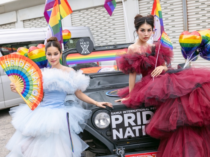 ต่อด้วยขบวนของสาว ๆ นำโดย ตัวแม่นักร้องสาวดีว่าทรงพลัง หวาย ปัญญ์ธิษา พร้อมด้วย ชมพู อทิตา, ตังเม เมธาวี ที่สวยสง่าด้วยชุดสุดปึ้ง กระโปรงฟูฟ่องบนรถจี๊ป คอยทักทายแฟน ๆ ตลอดเส้นทางถนนพระราม1 ปิดท้ายด้วยขบวนเจ็ตสกีสุดซิ่งเสมือนโลดแล่นบนท้องทะเลสุดเฟี้ยว ของ โอห์ม ฐิติวัฒน์, อะตอม ณฐาภพ ที่มาโชว์ความเท่พร้อมสื่อสารให้แฟน ๆ มาร่วมจอยปิดท้ายเดือนแห่งไพรด์กันที่ เกาะสมุย ในงาน “PRIDE NATION SAMUI INTERNATIONAL FESTIVAL” เทศกาล Pride Festival ที่จัดจ้านที่สุดในภูมิภาคเอเชียตะวันออกเฉียงใต้ (Pride Nation is going to be ‘THE MOST FABULOUS FESTIVAL FOR ALL PRIDE FIRST TIME IN SOUTHEAST ASIA) ที่จะจัดขึ้น ในวันที่ 24-29 มิถุนายนนี้ ณ หาดเฉวง เกาะสมุย จังหวัดสุราษฎร์ธานี จัดเต็ม 6 วัน 6 คืน