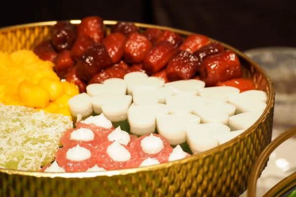 บุฟเฟต์ประกอบด้วย “ซีฟู้ด” อาทิ หอยนางรม ปูม้า หอยหวาน กุ้งแม่น้ำ หอยแมลงภู่นิวซีแลนด์ ฯลฯ พร้อมน้ำจิ้มสูตรเด็ดซี๊ดซ้าด รสแซบ “ซูชิพรีเมียม” ทั้งฟัวกราส์ วากิว ปลาไหลญี่ปุ่น โฮตาเตะ ฮามาจิ แซลมอน “ข้าวต้มกุ๊ย” บริการทั้งข้าวต้มแดง ข้าวต้มขาว ข้าวต้มข้าวกล้อง และเครื่องเคียงกับข้าวมากมาย “มุม Carving Station 7 วัน 7 เมนู” ขาหมูสูตรดิเอมเมอรัลด์ ข้าวต้มปลากะพง ซุปเห็ดทรัฟเฟิล กุ้งแม่น้ำเผา เทมปุระ เทปปันยากิ พาสต้า เครื่องดื่มน้ำอัดลม ชา-กาแฟ ของหวานทั้งไทย เบเกอรี่ ไอศกรีม และผลไม้ตามฤดูกาล รับประกันความคุ้มค่า ในราคาเพียงท่านละ 1,700 บาทถ้วน