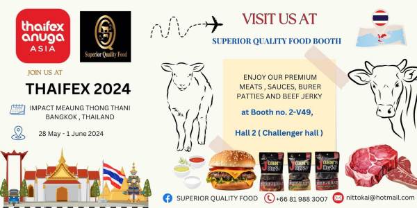 ซูพีเรีย ควอลิตี้ ฟู๊ด บุกตลาดใน THAIFEX -Anuga Asia 2024 เปิดตัว “แองกัสชาโลเลส์” เนื้อวัวพรีเมี่ยม แบรนด์ไทย คุณภาพเทียบเท่าเนื้อวัวนำเข้าจากต่างประเทศ และ ผลิตภัณฑ์ ซอสไทยพรีเมี่ยม Brand Mae’s Jon ที่พร้อมบุกตลาดต่างประเทศ