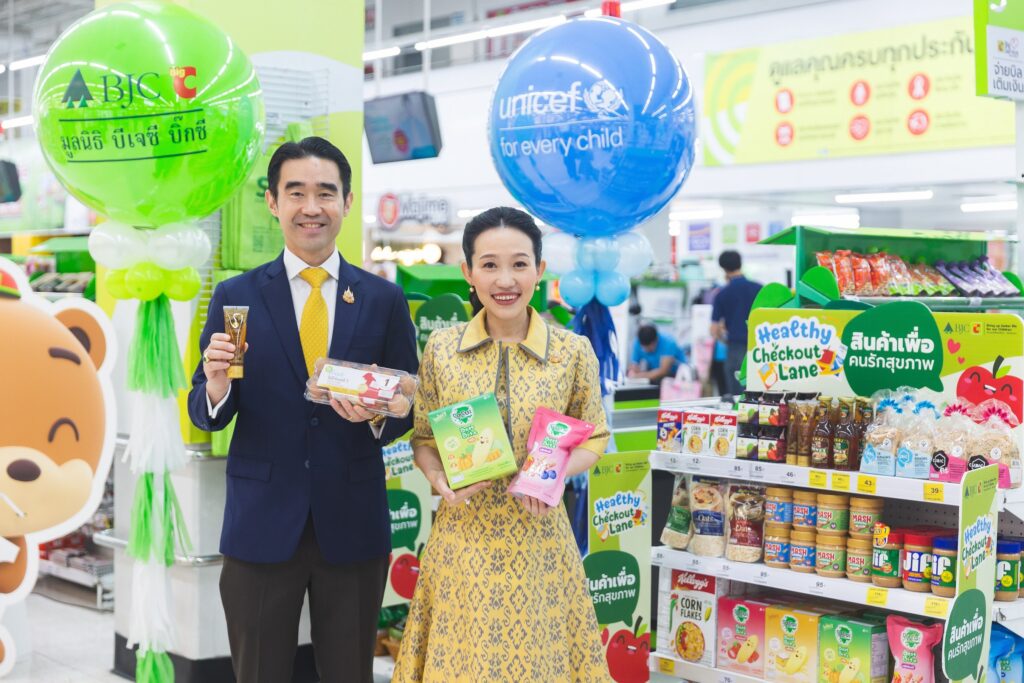 กรุงเทพฯ 30 พฤษภาคม 2567 – มูลนิธิ บีเจซี บิ๊กซี ผู้นำของห้างค้าปลีกชั้นนำในประเทศไทย และองค์การยูนิเซฟ ประเทศไทย เปิดตัวโครงการความร่วมมือ “สร้างสรรค์เพื่อชีวิตที่ดีกว่า เพื่อเด็กทุกคน” ซึ่งมุ่งเน้นการพัฒนาเด็กปฐมวัยอย่างมีคุณภาพ โดยวันนี้บิ๊กซีเริ่มต้นกิจกรรมแรกด้วยการเปิดช่องแคชเชียร์เพื่อคนรักสุขภาพ หรือ Healthy Checkout Lanes ที่บิ๊กซี 200 สาขาทั่วประเทศ โดยเป็นหนึ่งในกิจกรรม CSR ของมูลนิธิ บีเจซี บิ๊กซี ที่จะเกิดขึ้นตลอดปี 2567 ซึ่งสอดคล้องกับการดำเนินงานของยูนิเซฟในการส่งเสริมการพัฒนาเด็กปฐมวัยเพื่อยกระดับโภชนาการ การเรียนรู้และพัฒนาการของเด็กปฐมวัยในประเทศไทย