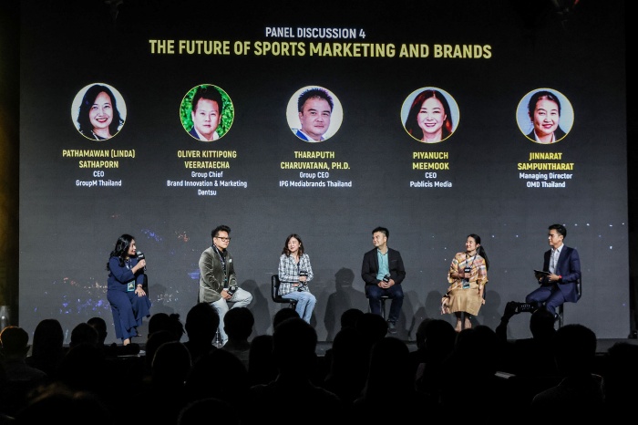 เรื่องที่ 5 หัวข้อ “อนาคตของ Sport Marketing และ Brands ” ผู้ร่วมอภิปราย ได้แก่ ปัทมวรรณ สถาพร CEO Group M ประเทศไทย, โอลิเวอร์ กิตติพงษ์ วีระเตชะ ประธานเจ้าหน้าที่บริหาร กลุ่มการตลาดและนวัตกรรม เดนท์สุ ประเทศไทย, ปิยนุช มีมุก CEO ปับลิซิส มีเดีย, ดร.ธราภุช จารุวัฒนะ ไอพีจี มีเดียแบรนด์ส ประเทศไทย
