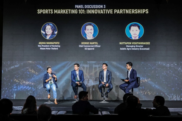 เรื่องที่ 4 หัวข้อ “Sport Marketing101: พาร์ทเนอร์ทางด้านนวัตกรรม” ผู้ร่วมอภิปราย ได้แก่ มาซาโอะ ซูมิ รองประธานอาวุโสฝ่ายการผลิต และการจัดการซัพพลายเชน นิสสัน ประเทศไทย, จอร์จ ฮาเทล ประธานเจ้าหน้าที่บริหารฝ่ายการตลาด GQ Apparel, ณัฐพล วิสุทธิไกรสีห์ กรรมการผู้จัดการ บริษัท เอเซียติค อุตสาหกรรมเกษตร จำกัด (Cocomax)