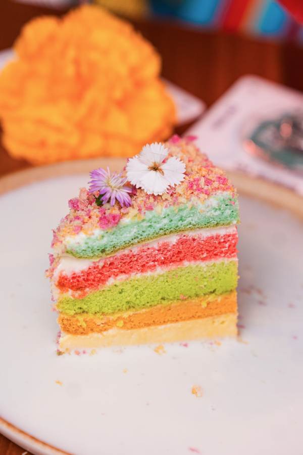 ในส่วนเมนูของหวาน El Santo ขอนำเสนอ Rainbow Tres Leches (220 บาท) เค้กสปันจ์สไตล์เม็กซิกันที่ผสมผสานนมชั้นดีรวมไว้ถึงสามชนิด อัดแน่นด้วยรสชาติและสีสันอันสดใส สะท้อนถึงจิตวิญญาณแห่งความสดใสตลอดช่วง Pride Month