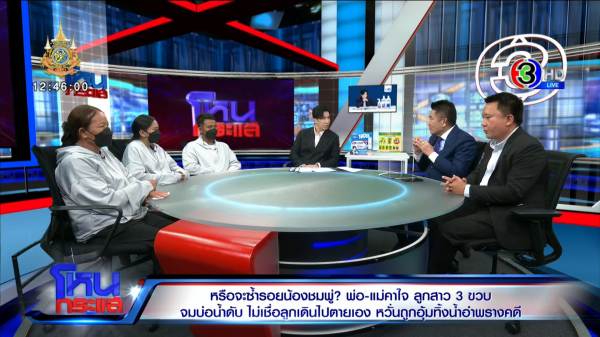 รายการโหนกระแส ออกอากาศวันที่ 19 มิ.ย. 67 ดำเนินรายการโดย “หนุ่ม กรรชัย กำเนิดพลอย” ผลิตในนามบริษัท ดีคืนดีวัน จำกัด ออกอากาศทุกวันจันทร์-ศุกร์ เวลา 12.35 น. ทางช่อง 3 กดหมายเลข 33 สัมภาษณ์ พ่อแบน,แม่บี,ย่าทิพย์ ไม่เชื่อว่าน้องจะเดินไปเองแล้วเสียชีวิต, พล.ต.ต.วิชัย สังข์ประไพ อดีตรองผู้บัญชาการตำรวจนครบาล , รศ.นพ.วีระศักดิ์ จรัสชัยศรี แพทย์ผู้เชี่ยวชาญด้านนิติเวช มศว.