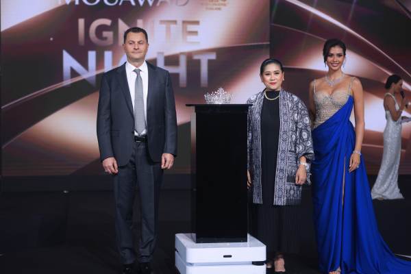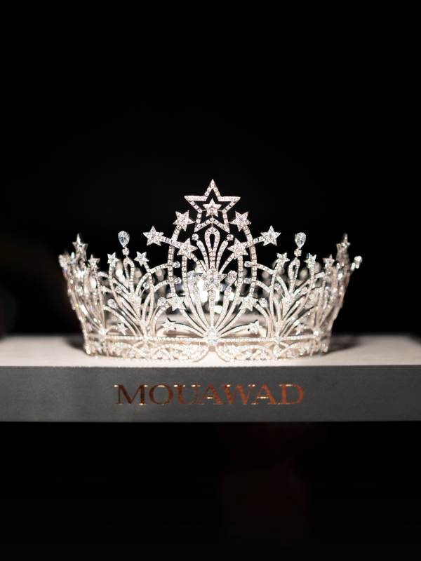 และสำหรับ MOUAWAD “Starlight Crown” ตัวเรือนประดับด้วยเพชรขาว 133 เม็ด น้ำหนักรวม 7.54 กะรัต โดยมีความพิเศษอยู่ที่เพชรขาวรูปดาวน้ำงามเจิดจรัส และอัญมณีสีขาวมากกว่า 2,500 เม็ด น้ำหนักรวม 176.76 กะรัต ซึ่งสื่อถึงเจตนาอันบริสุทธิ์ สะท้อนถึงความปรารถนาอย่างแรงกล้าที่จะสร้างความเปลี่ยนแปลงเชิงบวกเพื่อการพัฒนาสังคมให้ดียิ่งขึ้น