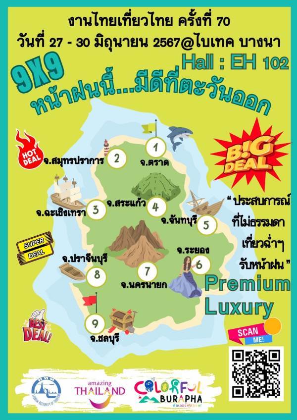 เตรียมพบกันได้ที่ “งานไทยเที่ยวไทย” วันที่ 27 – 30 มิถุนายน 2567 เวลา 10.00 น. – 21.00 น. ณ ศูนย์นิทรรศการและการประชุมไบเทค บางนา กรุงเทพมหานคร โปรโมชั่น เด็ด ๆ จากภาคตะวันออก พร้อมการซื้อ-ขาย Online ผ่านทาง ททท. ; Tourism Department Store