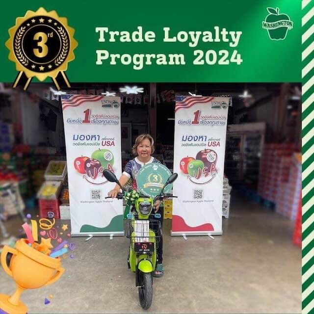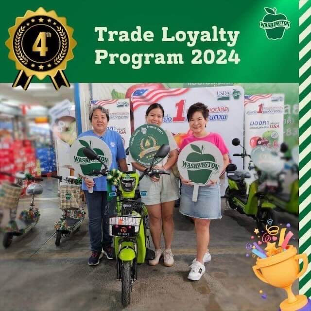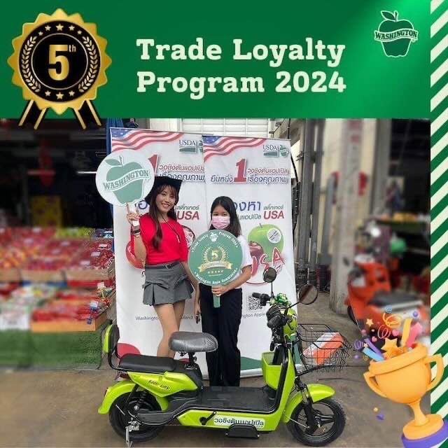 วันที่ 28 มิถุนายน 2567 คุณธีรวี อังกุวรกุล และคุณอภิรดี ภานุรุจ ตัวแทนสมาพันธ์ส่งเสริมการส่งออกแอปเปิลจากรัฐวอชิงตัน ประจำประเทศไทย เข้ามอบของรางวัลให้กับร้านค้าส่งที่เข้าร่วมแคมเปญ Trade Loyalty Program 2024 ที่ได้จัดอย่างต่อเนื่อง เป็นปีที่ 4 โดยในฤดูกาลนี้ ทางวอชิงตันแอปเปิลคอมมิชชั่น – ประเทศไทยได้มอบของรางวัลให้กับทุกร้านที่เข้าร่วมกิจกรรมตลอดฤดูกาลตั้งแต่เดือนตุลาคม 2566 ถึงเดือนมิถุนายน 2567 ซึ่งแตกต่างจากปีที่ผ่านมา ที่มีรางวัลให้กับผู้ที่ได้คะแนนรวมสูงสุด 5 ร้านเท่านั้น ซึ่งในครั้งนี้ เพื่อเป็นการขอบคุณ และการแสดงออกถึงการให้ความสำคัญต่อผู้นำเข้า ผู้ค้าส่ง และผู้ค้าปลีก ที่จำหน่ายวอชิงตันแอปเปิล จากรัฐวอชิงตัน ประเทศสหรัฐอเมริกาตลอดฤดูกาล 2023/2024 รวมถึงการติดสื่อประชาสัมพันธ์ภายในร้านอย่างต่อเนื่อง ทุกร้านจะได้รับของกำนัลจากการเข้าร่วมแคมเปญ โดยในปีนี้มีร้านเข้าร่วม 80 ร้าน หรือคิดเป็นร้อยละ 60 ของจำนวนร้านร้านค้าส่งทั้งหมดในตลาดไท-ตลาดนานาชาติ, ตลาดไอยรา, ตลาดสี่มุมเมือง, ตลาดมหานาค และ ตลาดบองมาเช่ ซึ่งเป็นตลาดที่มีวอชิงตันแอปเปิลจำหน่ายตลอดทั้งปี