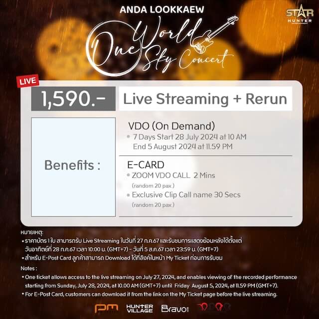 Live Streaming Ticket (บาท): 1,590 / รอบการแสดง (E-Ticket สำหรับเข้าชม Live Streaming ต่อหนึ่งรอบการแสดง)