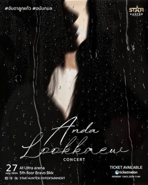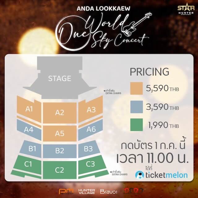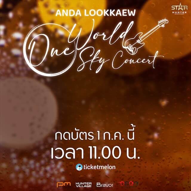 ใน ANDA LOOKKAEW “One World One Sky” CONCERT จองตั๋วพร้อมกันวันที่ 1 กรกฎาคม พ.ศ. 2567 ตั้งแต่เวลา 11.00 น. เป็นต้นไป ห้ามพลาด!