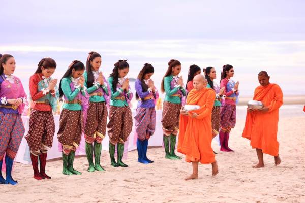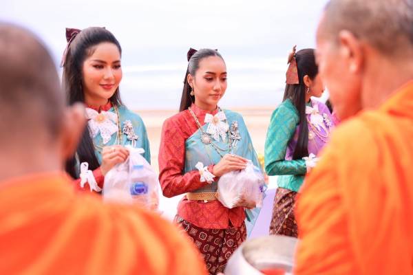กองประกวด Miss Universe Thailand 2024 ถือฤกษ์ดีของเช้าการเก็บตัววันที่ 7 ก่อนกลับสู่กรุงเทพมหานคร พา 40 สาวงามผู้เข้าประกวด สวมชุดไทยตักบาตรพระสงฆ์จำนวน 40 รูป ริมหาดสวนสนประดิพัทธ์