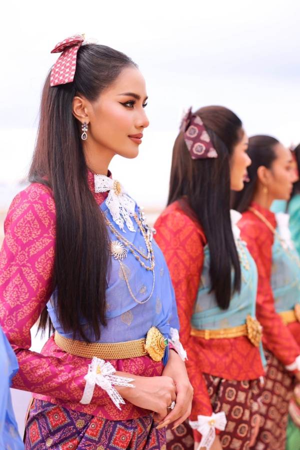 การแต่งกายครั้งนี้ถูกออกแบบให้เป็นอย่างสตรีราชสํานักและสตรีมีศักดิ์ ในช่วงปลายรัชกาลที่ ๔ ถึงต้นรัชกาลที่ ๕ โดยนําแรงบันดาลใจมารังสรรค์ชุดขึ้นใหม่เป็นรูปแบบที่ผสานความงามแห่งกาลเวลาเข้ากับการนำความโดดเด่นของแต่ละสมัยมาออกแบบไว้ด้วยกันอย่างลงตัว ให้เป็นเอกลักษณ์เฉพาะในการประกวด Miss Universe Thailand 2024 ด้วยลวดลายผ้าลายอย่าง และผ้าลายเทียมยกทอง นํามาตัดเย็บเป็นชุดที่มีเอกลักษณ์เพียงหนึ่งเดียวในโลก โดยลิขสิทธิ์เฉพาะของ ภูษาผ้าลายอย่าง ให้สมกับความงามระดับจักรวาล
