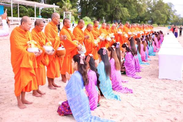 MUT2024 ถือฤกษ์ดีก่อนกลับกรุง นุ่งผ้าไทยลายอย่าง ตักบาตรริมหาดสวนสน