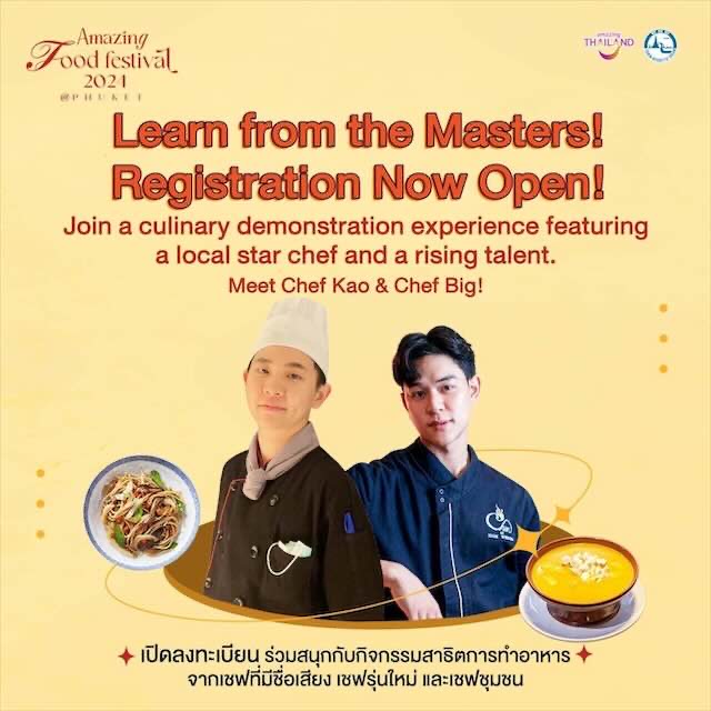 นอกจากนี้ยังมีกิจกรรมการสาธิตการสอนทำอาหาร โดยเชฟบิ๊ก-ภูริพรรษ ใจวีระวัฒนากุล ผู้ชนะจากรายการ Stars Chef Thailand เชฟเก้า-วาโย นิสัชชนาการ Head of Cold kitchen Hilton Bangkok grand Asoke และเชฟจากชุมชนวิสาหกิจชุมชนบางโรง และชุมชนบ้านบางเทา-เชิงทะเล พร้อมเชิญชวนนักท่องเที่ยวที่มาร่วมงาน เข้าร่วมกิจกรรม One Day Trip ที่ชุมชนบ้านบางโรง จังหวัดภูเก็ต เพื่อทำกิจกรรมในชุมชนและเรียนรู้ต้นกำเนิดแห่งวัตถุดิบด้านอาหารของจังหวัดภูเก็ต สามารถลงทะเบียนได้ที่ Facebook Page: Amazing Food Festival 2024