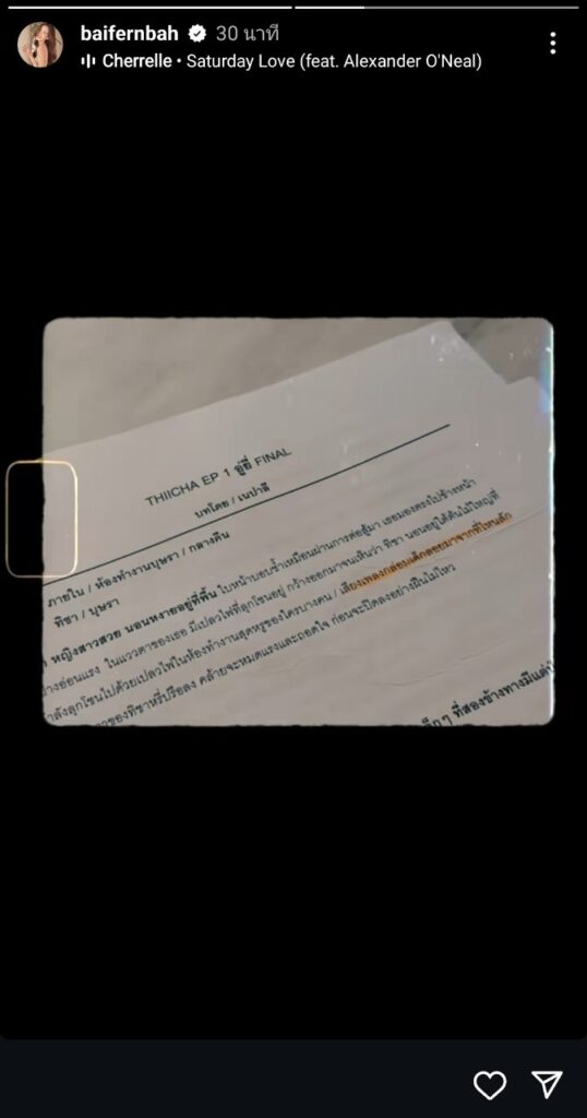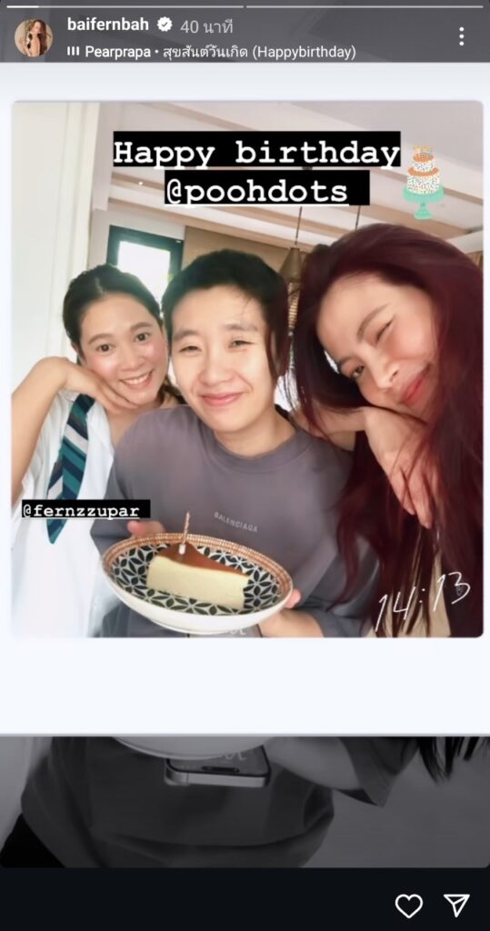 และล่าสุด สาวใบเฟิร์น เคลื่อนไหวผ่านทางสตอรี่ในอินสตาแกรม ที่เป็นการแฮปปี้เบิร์ดเดย์รุ่นพี่ที่สนิท และลงบทละคร ทิชา ซึ่งกำลังจะเปิดกล้องเร็ว ๆ นี้