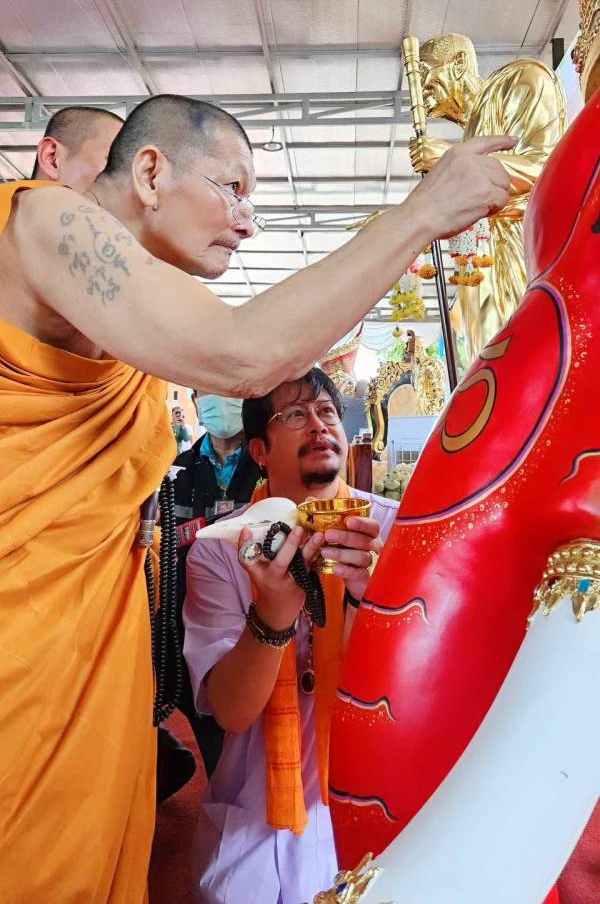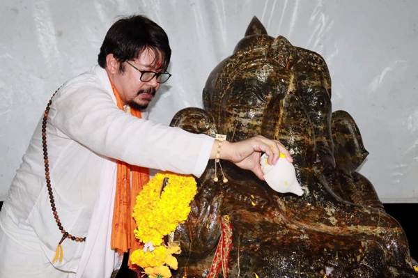 แต่ว่าความสำเร็จในทางโลกที่เราได้ เราค่อยนำพาของตรงนี้ สำเร็จทางโลกแล้วนำไปเกื้อหนุนทางธรรม ผมอยากให้ยึดตรงนี้ไว้เราจะได้บูชาเทพอย่างถูกต้อง ตรงทางและเหมาะสม รู้ความพอดีมีแก่นทางพระพุทธศาสนา มีทางสายกลาง มีหลักธรรมของพระพุทธองค์ ทำดีด้วย อธิษฐานดีด้วย เก่งด้วย และเฮงด้วยมันถึงจะพร้อมเพราะฉะนั้นทุกอย่างมันคือองค์ประกอบที่สำคัญ ซึ่งตรงนี้ผมก็ได้มีโอกาสไปช่วยสร้างบารมีถวายหลวงปู่ศิลา ศิริจันโท เรามีความรัก ในพระพุทธศาสนา แต่เราเป็นพรคือแยกแยะไม่ออกหรอกระหว่างพุธกับพราหมณ์ จะคอยสนับสนุนพุทธอยู่แล้ว เพราะฉะนั้นการทำงานในรูปแบบของผม คือการนำเสนอในรูปแบบของเทพ เพื่อสืบสานพระพุทธศาสนา ผมขออนุญาตยกตัวอย่าง อย่างเช่นจังหวัดฉะเชิงเทรา องค์พระพิฆเนศเสด็จไปถวายบารมีองค์หลวงพ่อพระพุทธโสธร เราจะเห็นพระพิฆเนศปางสำคัญ ๆ ไปอยู่ที่จังหวัดฉะเชิงเทรา เป็นปางที่ใหญ่ที่สุดในโลกทั้งสามพระองค์