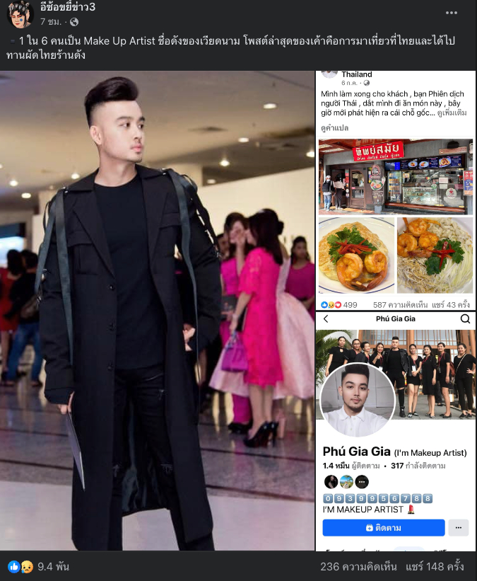 โดยทางเพจ อีซ้อขยี้ข่าว3 ได้มีการเปิดเผย Facebook ของช่างแต่งหน้าชื่อดัง ที่ชื่อว่า Mr.DINH TRAN PHU (ภู เกีย เกีย) อายุ 36 ปี เป็นช่างแต่งหน้าชื่อดังจากเมืองดานัง ประเทศเวียดนาม ซึ่งในโพสต์นี้โพสต์ถึงการมาท่องเที่ยวที่ประเทศไทย พร้อมกับไปรับประทานอาหารที่ร้านผัดไทยชื่อดังอีกด้วย