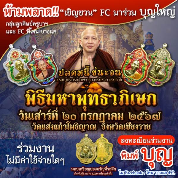 ขอเชิญผู้มีจิตศรัทธาร่วมงานบุญใหญ่ประจำปี พิธีมหาพุทธาภิเษก ปลดหนี้ชนะจน เหรียญมังกรคู่ 67 ครูบาอริยชาติ อริยจิตฺโต 20 ก.ค.นี้!!