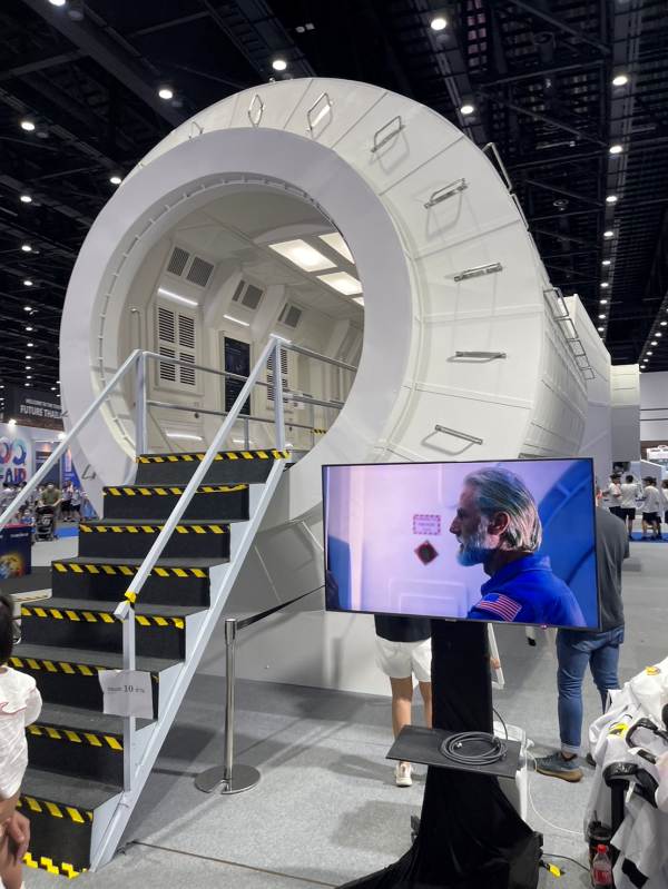 ซึ่งยานอวกาศที่นำมาแสดงในครั้งนี้ เป็นลำเดียวกันกับที่ใช้ในการถ่ายทำภาพยนตร์‘ยูเรนัส2324’ ที่ “ลิน” นักบินอวกาศหญิงที่รับบทโดย ฟรีน สโรชา ปฏิบัติภารกิจบนยานอวกาศ มีความสูงจากพื้นเกือบ 5 เมตร กว้าง 12 เมตร สามารถใช้งานได้จริง ภายในจะประกอบด้วยระบบปฏิบัติการต่างๆ ที่เกี่ยวข้องกับภารกิจการสำรวจอวกาศ เช่น ระบบพยากรณ์สภาพอวกาศ เพื่อการติดตามและเฝ้าระวังภัยพายุจากอวกาศ และระบบการแจ้งเตือนความเสี่ยงจากการชนกันกับวัตถุอวกาศ ซึ่งระบบต่างๆ เหล่านี้ ล้วนแล้วแต่ส่งผลกระทบและความเสียหายต่อการปฏิบัติภารกิจในห้วงอวกาศ