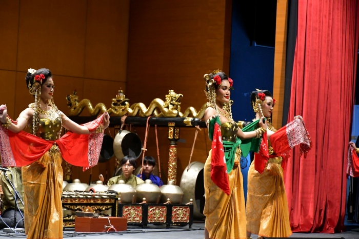 สำหรับผู้เข้าร่วมโครงการความร่วมมือทางวิชาการและอบรมเชิงปฏิบัติการ: ดนตรีและนาฏศิลป์อินโดนีเซีย ทั้งคณาจารย์ นิสิต และบุคคลภายนอก จะได้รับการอบรมเชิงปฏิบัติการแลกเปลี่ยนเรียนรู้ศิลปวัฒนธรรมทางด้านดนตรีและนาฏศิลป์ของอินโดนีเซีย ที่มีความโดดเด่นและเป็นเอกลักษณ์เฉพาะตัวอย่างดนตรีกาเมลันชวา (Javanese Gamelan) ซึ่งเป็นดนตรีท้องถิ่นของคนชวาในประเทศอินโดนีเซียที่เป็นวงดนตรีที่รวมเครื่องดนตรีหลายชนิดเข้าไว้ด้วยกัน ประกอบด้วยเครื่องดนตรีประเภทตีชนิดต่างๆ เช่น กลอง (Kendang) ฆ้องโลหะประเภทต่างๆ ประกอบด้วยโบนัง (Bonang), เกอน็อง (Kenong), เกิมปุล (Kempul) และ ก็อง (Gong) ยังมีเครื่องสาย เช่น เรอบับ (Rebab) ที่มีลักษณะคล้ายซอสามสายของไทย เครื่องเป่าประเภทขลุ่ย เรียกว่า ซูลิง (Suling) โดยดนตรีกาเมลันมีบทบาทสำคัญในวัฒนธรรมและพิธีกรรมของชาวอินโดนีเซีย โดยเฉพาะกลุ่มคนชวา (Javanese) และคนซุนดา (Sundanese) ในเกาะชวา (Java) และคนบาหลีในเกาะบาหลี (Bali) มักใช้ในการแสดงละครท้องถิ่น งานแต่งงาน การแสดงหุ่นเงา หรือ วายังกุลิต (Wayang Kulit) นอกจากนี้ดนตรีกาเมลันยังมีลักษณะเสียงที่เป็นเอกลักษณ์ ซึ่งสร้างความรู้สึกที่มีมนต์ขลัง ดนตรีกาเมลันยังถือเป็นศิลปะที่ต้องใช้ทักษะและความชำนาญในการเล่นเครื่องดนตรีแต่ละชิ้น ซึ่งต้องประสานเสียงกันอย่างลงตัวเพื่อสร้างบทเพลงที่สมบูรณ์และงดงาม รวมถึงนาฏศิลป์อินโดนีเซีย อย่างการแสดงชุด โกเละก์ เกินโย ตีเนิมเบ (Golek Kenya Tinembe) บรรเลงประกอบด้วยเพลง ลา ดรัง อัสโมโรโดโน (Ladrang Asmaradana) เป็นการแสดงรำแบบขนบของราชสำนักยอกยาการ์ตา กล่าวถึงสตรีชวาที่จะเติบโตเป็นผู้ใหญ่จะต้องศึกษาเล่าเรียน ดูแลตัวเอง และมีวัตรปฏิบัติดีงามสมเป็นกุลสตรีชวา และการบรรเลงดนตรีกาเมลันชวาเพลงกังซาราน โรโร มิงก๊ะห์ ลันจารัน มายาร์ เซวู (Gangsaran 2 minggah Lancaran Manyar Sewu, laras pelog pathet barang) บทเพลงของราขสำนักชวา นครยอกยาการ์ตา ที่มีอัตราจังหวะต่อเนื่องกันสองอัตราจังหวะ แสดงฝีมือการบรรเลงของนักดนตรีที่สร้างเพลงที่คล้ายนกยูงทั้งพันตัวขึ้นบินระยิบระยับท้องฟ้า ต่อด้วย ละครรำชวา เรื่องอิเหนา ตอน Klana Sewandana Lena ที่กล่าวถึงความรักของจรกาที่มีต่อบุษบาจนทำให้เกิดเป็นสงครามขึ้นถ่ายทอดให้เข้าใจและเข้าถึงวัฒนธรรมผ่านการแสดงออกในรูปแบบดนตรีและการแสดงนาฏศิลป์ที่หาชมได้ยาก แสดงให้เห็นถึงความคิดสร้างสรรค์และการสื่อสารถึงวัฒนธรรมประจำชาติผ่านท่วงทำนองและลีลาท่าทางที่สวยงามอ่อนช้อยรวมถึงเสื้อผ้าเครื่องแต่งกายเครื่องประดับที่ออกแบบอย่างวิจิตรบรรจง และการแสดงเปิดงานชุดระบำฆ้องใหม่ โดยนิสิตจากคณะศิลปกรรมศ