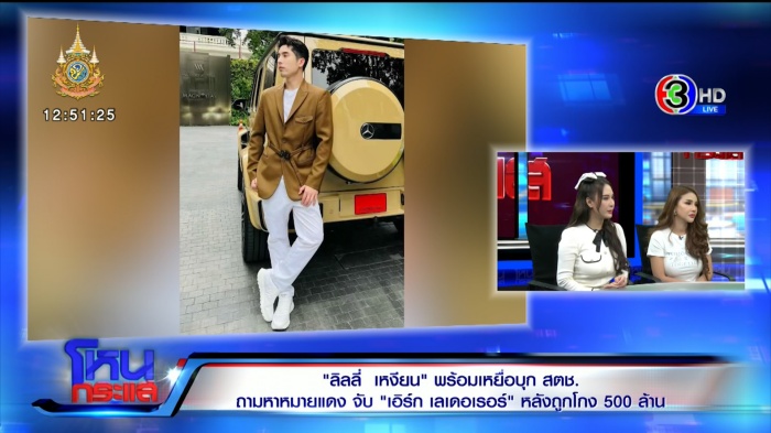 รายการโหนกระแส ออกอากาศวันที่ 2 ส.ค. 67 ดำเนินรายการโดย “หนุ่ม กรรชัย กำเนิดพลอย” ผลิตในนามบริษัท ดีคืนดีวัน จำกัด ออกอากาศทุกวันจันทร์-ศุกร์ เวลา 12.35 น. ทางช่อง 3 กดหมายเลข 33 สัมภาษณ์ผู้เสียหาย ลิลลี่ เหงียน, เดือน, ลูกน้ำ , ปอร์เช่ มาพร้อม อี้ แทนคุณ และ ทนายไพศาล เรืองฤทธิ์
