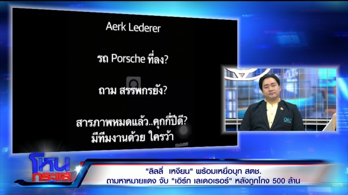 ลิลลี่ : หนูสงสัยกับอีกคนที่อยู่ในประเทศไทย คนใกล้ชิดเขา เป็นดารา เป็นบัญชีม้า คนนั้นมั่นใจว่าเขาเกี่ยวข้องกับเอิร์ก