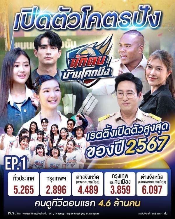 ฟาก “ละครเย็น” ก็ประสบความสำเร็จ ครองใจผู้ชมทั่วประเทศ มาอย่างต่อเนื่อง ด้วยมวลความสนุก ครบรส หลากหลายแนว จนโดนใจแฟนละครทุกเพศทุกวัย อย่างละคร “ดั่งธรณี” ที่รวมนักแสดงท็อปสตาร์ นิว วงศกร, ไผ่ พงศธร, ต่าย อรทัย จนกลายเป็นละครกระแสดี กระแสแรง แบบไม่มุสาวาปึ้ง!และที่เพิ่งลาจอไปแบบสด ๆ ร้อน ๆ “นางฟ้ากรรมกร” ที่ก่อสร้างความสุข ทัชใจแฟน ๆ ทั่วประเทศ จนขึ้นแท่น “ละครเย็นที่เรตติ้งสูงที่สุด 2567” ด้วยเรตติ้งทั่วประเทศ : 6.949 และล่าสุดละครที่กำลังออกอากาศให้แฟน ๆ ได้รับชมกัน “นักตบบ้านโคกปัง” แค่เปิดตัวเรตติ้งก็โคตรปัง!! ตั้งแต่อีพีแรก กวาดเรตติ้งทั่วประเทศ : 5.265 ขึ้นแท่น “ละครเย็นเปิดตัวสูงสุดของปี 2567” และมาร่วมส่งแรงเชียร์ แรงใจ ให้เหล่านักตบแห่งบ้านโคกปัง เสิร์ฟลูกตบเริ่ด ๆ จนต้องอึ้งพร้อมกัน เวลา 1 ทุ่มตรง ทุกวันจันทร์-ศุกร์