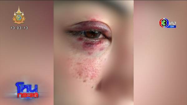 เอ : ตอนนั้นผมยังไม่เห็น ก็ให้ขึ้นรถมาแล้ว ถึงเปิดไฟดูว่าเป็นยังไงบ้าง มีตาข้างขวาเป็นรอยแดงจุดนึง ตอนนั้นมีแค่นี้