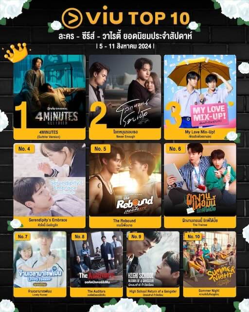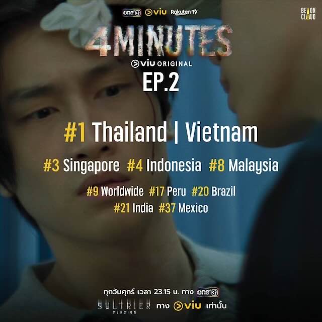 เรียกได้ว่าเป็น BL Series ที่เริ่มมีการพูดถึงเป็นอย่างมากในโซเชียลมีเดียมาตั้งแต่ช่วง EP. แรกที่เข้าฉายทั้งในช่อง one31 และ Sultrier Version ที่แอป Viu แต่คิดไม่ถึงเลยจริง ๆ ว่า 4MINUTES เรื่องนี้จะสามารถครอง ”อันดับ 1” ทั้งในไทยและต่างประเทศมาได้อย่างต่อเนื่องและรวดเร็วในทุกสัปดาห์ที่เข้าฉายมากว่า 3 EP. แล้ว แถมยังขึ้นอันดับ 1 ซีรีส์ที่ร้อนแรงน่าติดตามที่สุดของ Viu ได้ในระยะเวลาอันสั้น นำหน้าซีรีส์ต่างประเทศที่เข้าฉายในเวลาเดียวกันอีกด้วย !