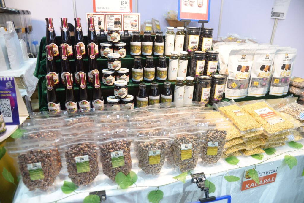 กลุ่มแปรรูปผลิตภัณฑ์หม่อนไหมแม่ฮ่องสอน ตราควีนเบอร์รี่ (QUEENBERRY) นำสินค้าที่เป็นเอกลักษณ์สำหรับผลิตภัณฑ์หม่อนไหมหลากหลาย ไม่ว่าจะเป็นน้ำมัลเบอร์รี่พร้อมดื่ม สูตรไม่เติมน้ำตาล โดยใช้มัลเบอร์รี่ 100% แยมมัลเบอร์รี่ มัลเบอร์รี่จ๊าดจิ๊ด น้ำชาเขียวใบหม่อนน้ำผึ้งมะนาว ชาเขียวใบหม่อน ผสมคาโมมายล์ ขนมแปรรูปจากงาดำ งาขาว งาขี้ม่อน นำมาผสมกับน้ำมัลเบอร์รี่เพื่อให้ความหวานจากธรรมชาติ มัลเบอร์รี่ปั่นโยเกิร์ต ใช้มัลเบอร์รี่สด ๆ ผลิตภัณฑ์แปรรูปจากหม่อนมาร่วมแสดงใน “งานตรานกยูงพระราชทาน สืบสานตำนานไหมไทย” ครั้งที่ 19 ประจำปี 2567