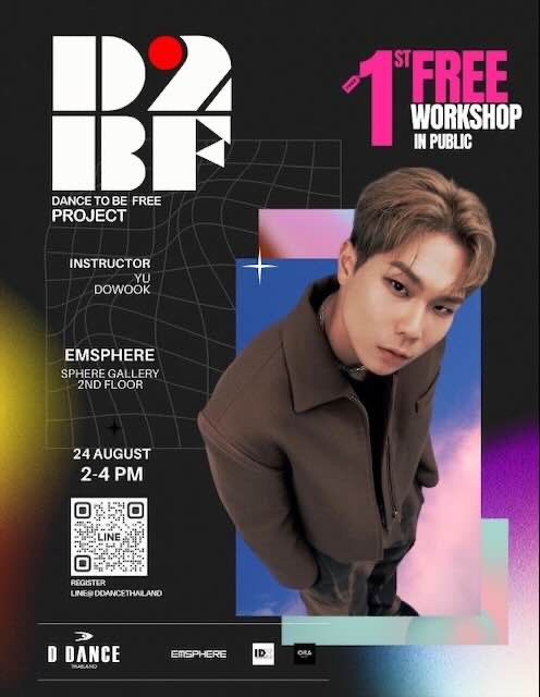 D Dance Thailand สถาบันพัฒนาศิลปินด้านทักษะและความคิดให้มีศักยภาพสู่การเติบโตอย่างมีความสุขและมีประสิทธิภาพ ชวนสายเต้นมาร่วมกิจกรรม “DANCE TO BE FREE” โปรเจ็คเวิร์กช็อป เต้น ฟรี! ที่ได้คว้าตัวแดนเซอร์และนักออกแบบท่าเต้นหนุ่มสุดฮ็อตจากประเทศเกาหลีใต้ Yu Dowook ล่าสุดเป็น Dance Director ให้กับทางวง WayV และเคยได้ร่วมงานกับศิลปินคนดังอย่าง เจนนี่ แบล็คพิงค์ มาร่วมเป็นแขกรับเชิญพิเศษแชร์ประสบการณ์และเทคนิคการเต้นในเวิร์กช็อปครั้งนี้แบบเอ็กซ์คลูซีพสุด ๆ ซึ่งจะจัดขึ้นในวันเสาร์ที่ 24 สิงหาคม 2567 เวลา 14.00 น. – 16.00 น. ณ Sphere Gallery ชั้น 2 ศูนย์การค้าเอ็มสเฟียร์