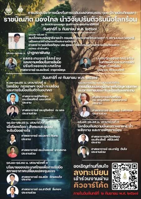 ฉลองครบรอบ ๑๐๐ ปี ราชบัณฑิตยสภา จัดงานประชุมวิชาการ “ราชบัณฑิต มองไกล นำวิจัยปรับตัวรับมือโลกร้อน”
