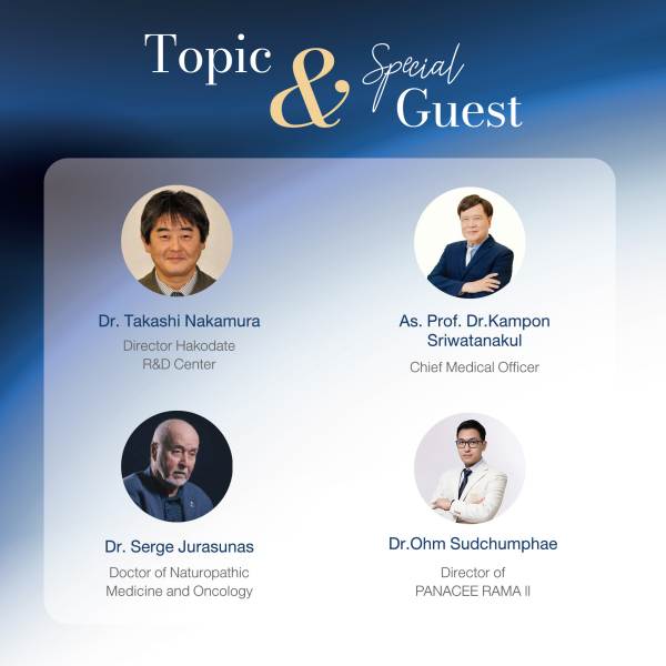 การจัดการประชุมเชิงวิชาการระดับนานาชาติ ในครั้งนี้ มีหัวข้อสำคัญ ได้แก่ “Asai Germanium As Non-toxic Cancer Treatment” โดย ดร. นากามูระ ทากาชิ ผู้อำนวยการศูนย์ R&D ฮาโกดาเตะ จากสถาบันวิจัยอาซาอิ เจอร์เมเนียม จำกัด”Clinical Experience Using Asai Germanium For Cancer Treatment” โดย Dr. Serge Jurasunas แพทยศาสตรบัณฑิต สาขาเวชศาสตร์ธรรมชาติและมะเร็งวิทยา และ “Immunology Therapy, iNKT” โดย ดร. ยาซูโอะ โคมูระ จาก Ringu Medical Center พร้อมบรรยายโดย รศ.ดร.นพ.กำพล ศรีวัฒนกุล ประธานเจ้าหน้าที่บริหาร สายงานการแพทย์ PANACEE BY BIOSKYภายในงานยังมีการนำเสนอนวัตกรรมจากพานาซีกับความร่วมมือระดับสากล ได้แก่ “Cell-Based Therapy” โดย รศ.ดร.นพ.กำพล ศรีวัฒนกุล “Photodynamic Therapy For Cancer Treatment” โดย ดร.ไมเคิล โธรกริช Founder & CEO of BioMed Group Asia International Clinic Network และ “The Metabolic Link: Obesity, Insulin Resistance, and Cancer Prevention” โดย นพ.โอม สุดชุมแพ ผู้อำนวยการ รพ.พานาซี พระราม 2
