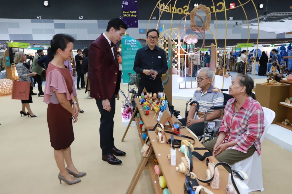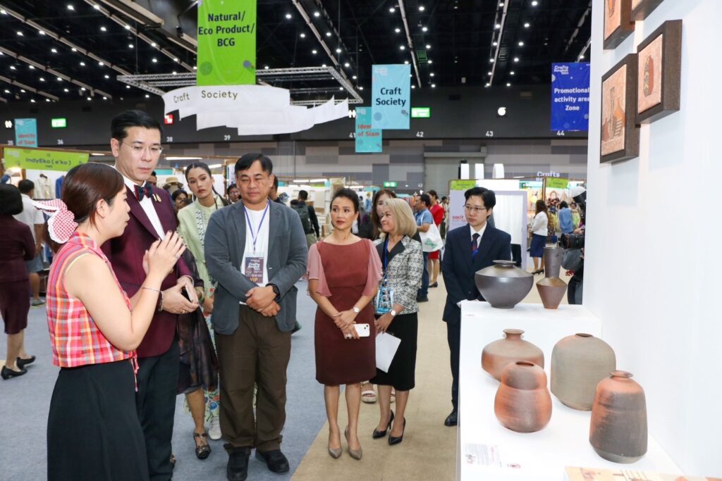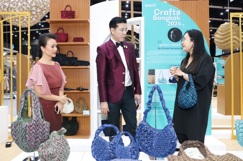 Crafts Bangkok 2024″ จัดโดยสถาบันส่งเสริมศิลปหัตถกรรมไทย (องค์การมหาชน) หรือ sacit  จากแนวคิด Sustainable Arts and Crafts” ขานรับนโยบายของกระทรวงพาณิชย์ที่ต้องการพัฒนาคุณภาพและมาตรฐานของผลิตภัณฑ์คราฟต์ของไทย ให้มีรูปแบบงานศิลปหัตถกรรมที่ร่วมสมัย ผสมผสานระหว่างอัตลักษณ์ไทยอย่างลงตัว จากความรู้และประสบการณ์ของครูช่าง ครูศิลป์ มาผสานรวมกับแนวคิดของกลุ่มคนรุ่นใหม่ที่มีความคิดสร้างสรรค์ เพื่อต่อยอด และจุดประกายความคิดสร้างสรรค์ให้แก่วงการคราฟต์ไทย โดยงานจัดไปเมื่อวันที่ 24 – 28 สิงหาคม ที่ผ่านมา ณ ไบเทค บางนา เป็นการรวมผลงานคราฟต์ที่โดดเด่นและเป็นเอกลักษณ์จากผู้ประกอบการณ์กว่า 400 คูหา ทั่วทุกภูมิภาคของไทยนับ 10,000 ชิ้น สู่สายตาชาวไทยและนักท่องเที่ยว ตลอด 5 วันของการจัดงาน ได้รับความสนใจอย่างล้นหลามจากผู้เข้าชมกว่า 35,000 คน ส่งผลให้งานนี้กลายเป็นงานคราฟต์ที่มีคนกล่าวถึงอย่างกว้างขวางและถือเป็นงานคราฟต์ที่ยิ่งใหญ่ที่สุดแห่งปี การจัดงานครั้งนี้จึงนับเป็นความสำเร็จของกระทรวงพาณิชย์ ในการมุ่งมั่นผลักดันผลงานคราฟต์ไทยให้ก้าวไปสู่ความเป็นสากล เป็นพลังขับเคลื่อนเศรษฐกิจ นำไปสู่การขยายตลาดส่งออกงานคราฟต์ไทยต่อไป