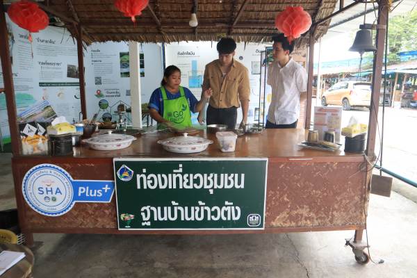 จากนั้นนั่งตุ๊กตุ๊กย้อนมาชมสาธิตการทำข้าวตังสด ณ บ้านศาลาดิน ฟินเวอร์กับการลงมือทำและชิมกันสด ๆ แล้วทุกวันเสาร์-อาทิตย์ พลาดไม่ได้กับการ ชิม-ชอป-ชิลล์ ที่ตลาดน้ำบ้านศาลาดิน ถิ่นค้าขายสินค้าเกษตรและอาหารการกินจากชุมชนคนระแวกนั้น ซึ่งนำมาจำหน่ายในราคาถูกมาก จนใครก็อดใจไม่ไหวซื้อกลับไปเต็มไม้เต็มมือแน่นอน