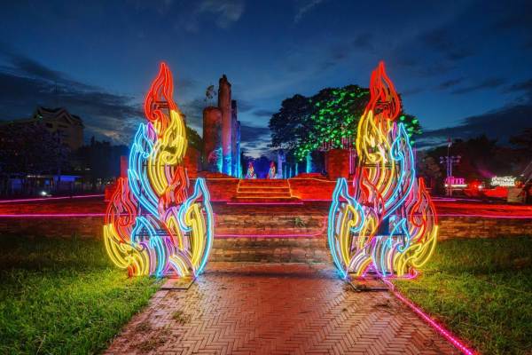 ● จุดแลนด์มาร์ก สะพานนเรศวร (จำลอง) แลนด์มาร์กแห่งความทรงจำในประวัติศาสตร์ อุโมงค์แสงประตูสู่ตำนานวีรบุรุษ ที่จัดแสดงอย่างตระการตา ด้วยเทคนิค Light Installation และ Strip Light ตอกย้ำความยิ่งใหญ่ ในการปกป้องบ้านเมืองของสมเด็จพระนเรศวรมหาราช