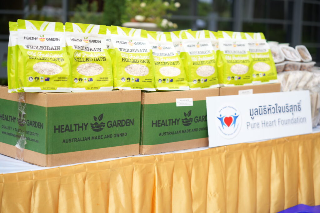 นางเธียรรัตน์ กล่าวว่า มูลนิธิหัวใจบริสุทธิ์ ร่วมกับ กลุ่มไทยสมายล์กรุ๊ป และพลังภาคีเครือข่าย มีความห่วงใยต่อชีวิตความเป็นอยู่ของพี่น้องประชาชนที่ประสบอุทกภัย ในวันนี้หน่วยงานดังกล่าวจึงได้พร้อมใจกันนำสิ่งของเครื่องอุปโภคบริโภค ประกอบด้วย ข้าวสาร น้ำดื่ม อาหารสำเร็จรูป ข้าวโอ๊ด น้ำมันพืช น้ำปลา และยารักษาโรค มามอบให้แก่มูลนิธิไทยพีบีเอส เพื่อนำไปบรรเทาความเดือดร้อนในเบื้องต้น ซึ่งสิ่งของที่มูลนิธิหัวใจบริสุทธิ์ได้รับบริจาคมาจากบริษัท วันสต๊อปแบรนด์ดิ้ง จำกัด กลุ่มไทยสมายล์กรุ๊ป และเครือข่ายภาคเอกชน รวมทั้งมูลนิธิยังได้มอบเรือไฟเบอร์กลาส จำนวน 2 ลำ ที่ได้รับบริจาคมาจากกลุ่มไทยสมายล์กรุ๊ป เพื่อมอบให้กับมูลนิธิไทยพีบีเอส ไว้ใช้ประโยชน์นำไปช่วยเหลือประชาชนที่ประสบอุทกภัยในพื้นที่