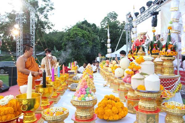 บรรยากาศภายในงาน ยังได้นักแสดงชื่อดังมากมายที่มาร่วมงานในครั้งนี้ ไม่ว่าจะเป็น คุณธงธง ม๊กจ๊ก, ดารานักแสดงจากละครเป็นต่อ, มิ้นท์ the face และคุณมาวิน แสงปราโมทย์ ฯลฯ และยังมีการแสดงรำจากกรมศิลปากรร่วมด้วย ผู้มีจิตศรัทธาร่วมบุญในพิธีบวงสรวง อาทิ บริษัท Natalie media Thailand,พิชญพร มณีกร บริษัท คอนเทนเนอร์ดีโป้ทเซอร์วิส จำกัด, นิษฐนนท์ พลขาล พร้อมทีมงาน, ร้าน Linen 359 แพลตตินั่ม แฟชั่นมอลล์ (คุณนุช) ณัฐฐพัทช์ จิตรการวรกิจ, บริษัท ลักซ์ชัวรี่ไวสบ์ทราเวล เกาะสมุย คุณกมลจรรย์ กล้าหาญ ครั้งนี้เงินรายได้จากการทำบุญจะนำถวายวัดเพื่อบูรณะปฏิสังขรณ์วัดต่อไป
