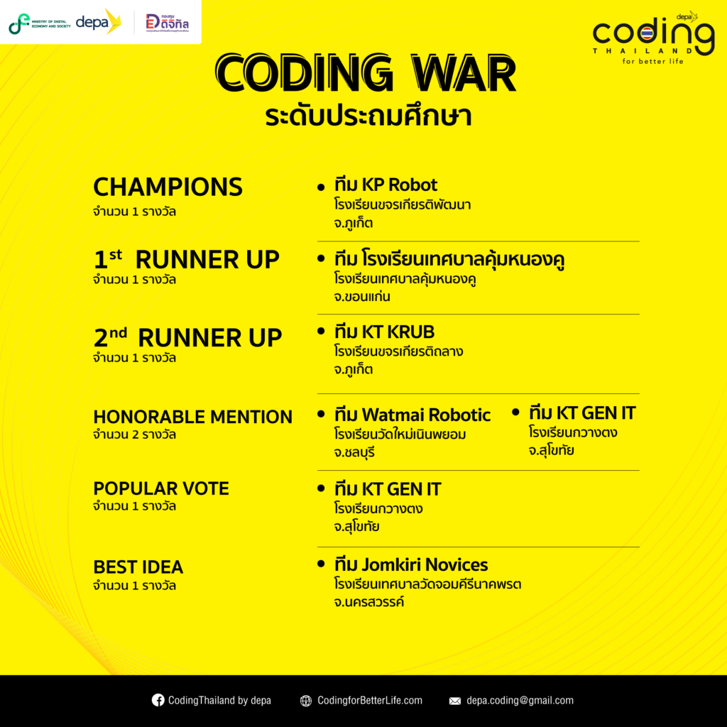 ติดตามรายละเอียดเพิ่มเติมได้ที่ www.depa.or.th, CodingforBetterLife.com และเฟซบุ๊กเพจ depa Thailand และ CodingThailand by depa