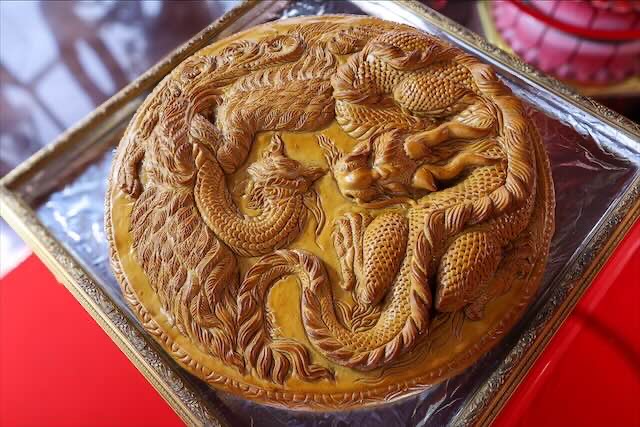 โดย เอส แอนด์ พี ได้นำขนมไหว้พระจันทร์ยักษ์ไส้ทุเรียนหมอนทองผสมเม็ดบัว ขนาดเส้นผ่าศูนย์กลาง 1 เมตร น้ำหนัก 100 กิโลกรัม ลวดลายหงส์คู่มังกร ซึ่งเป็นสัตว์มงคลของชาวจีน มีความหมายถึงความสมดุลของหยิน หยาง อิม เอี๊ยง และหงส์เป็นตัวแทนของความสุข ความสง่างาม ความมั่งคั่ง ส่วนมังกร เป็นตัวแทนของความเป็นสิริมงคล อำนาจบารมี ความยิ่งใหญ่ เมื่อหงส์กับมังกรอยู่คู่กัน จึงหมายถึงสัญลักษณ์ของความสมบูรณ์พูนสุข เปี่ยมไปด้วยความสำเร็จราบรื่น และความเจริญรุ่งเรือง